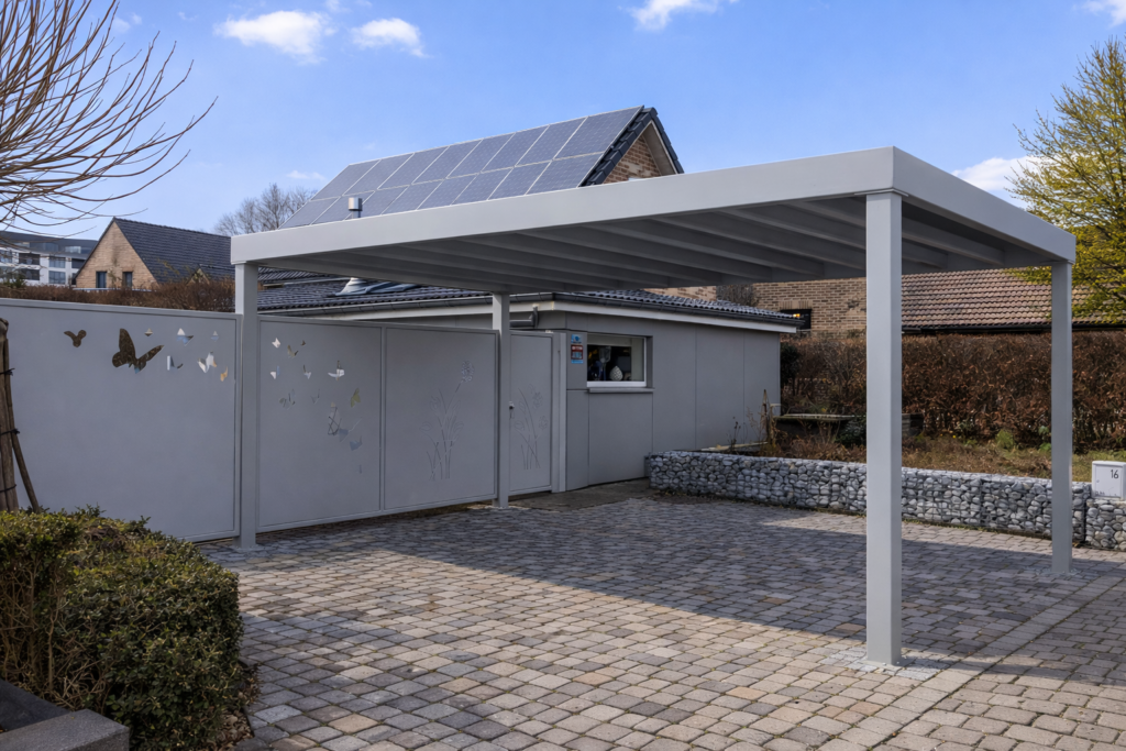 Carport de 6x3m en acier métallisé poudré RAL7042st