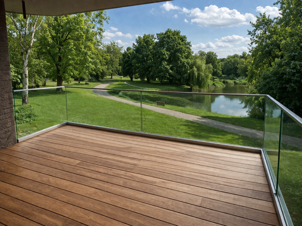 Garde-corps composé d’un rail alu, d’un volume de verre et d’une main-courante épurée