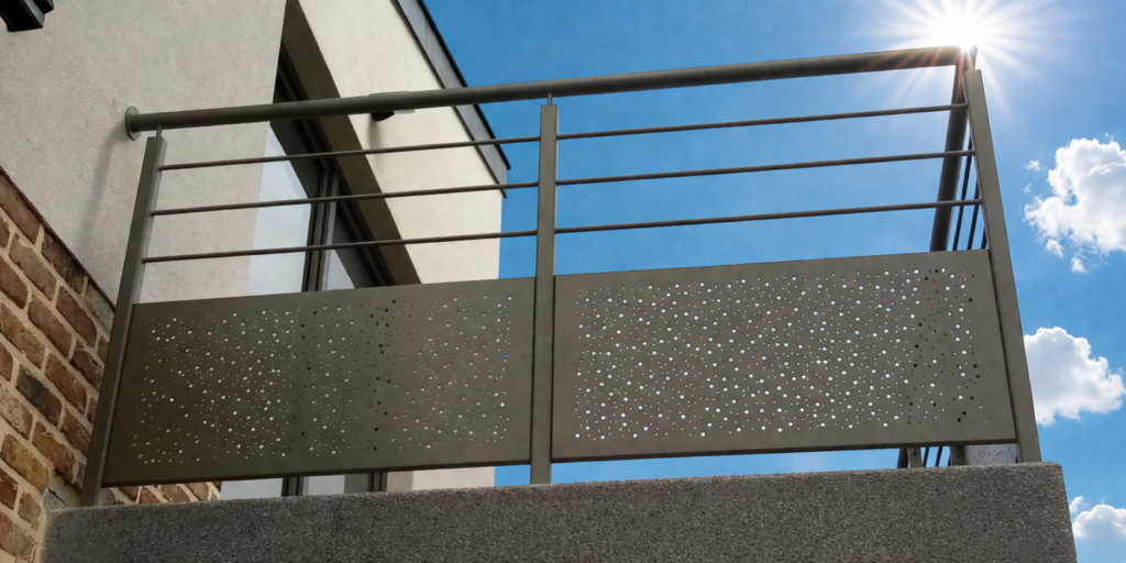 Garde-corps en acier avec tôle perforée aléatoirement
