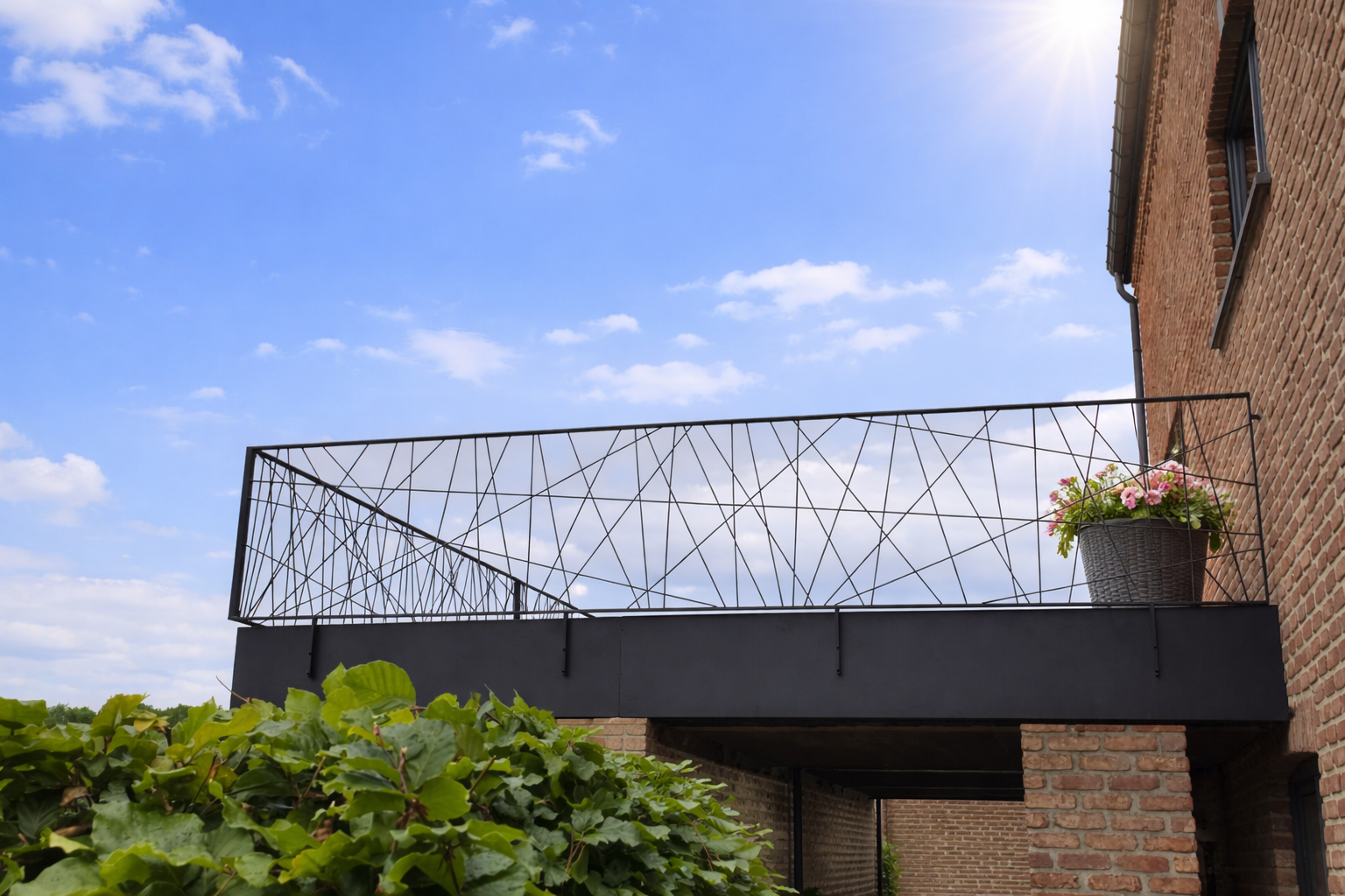 Garde-corps | Horizontaux Plinthe de finition et garde-corps mikado en acier métallisé poudré noir Plinthe de finition et garde-corps aléatoire Prev Project Next Project