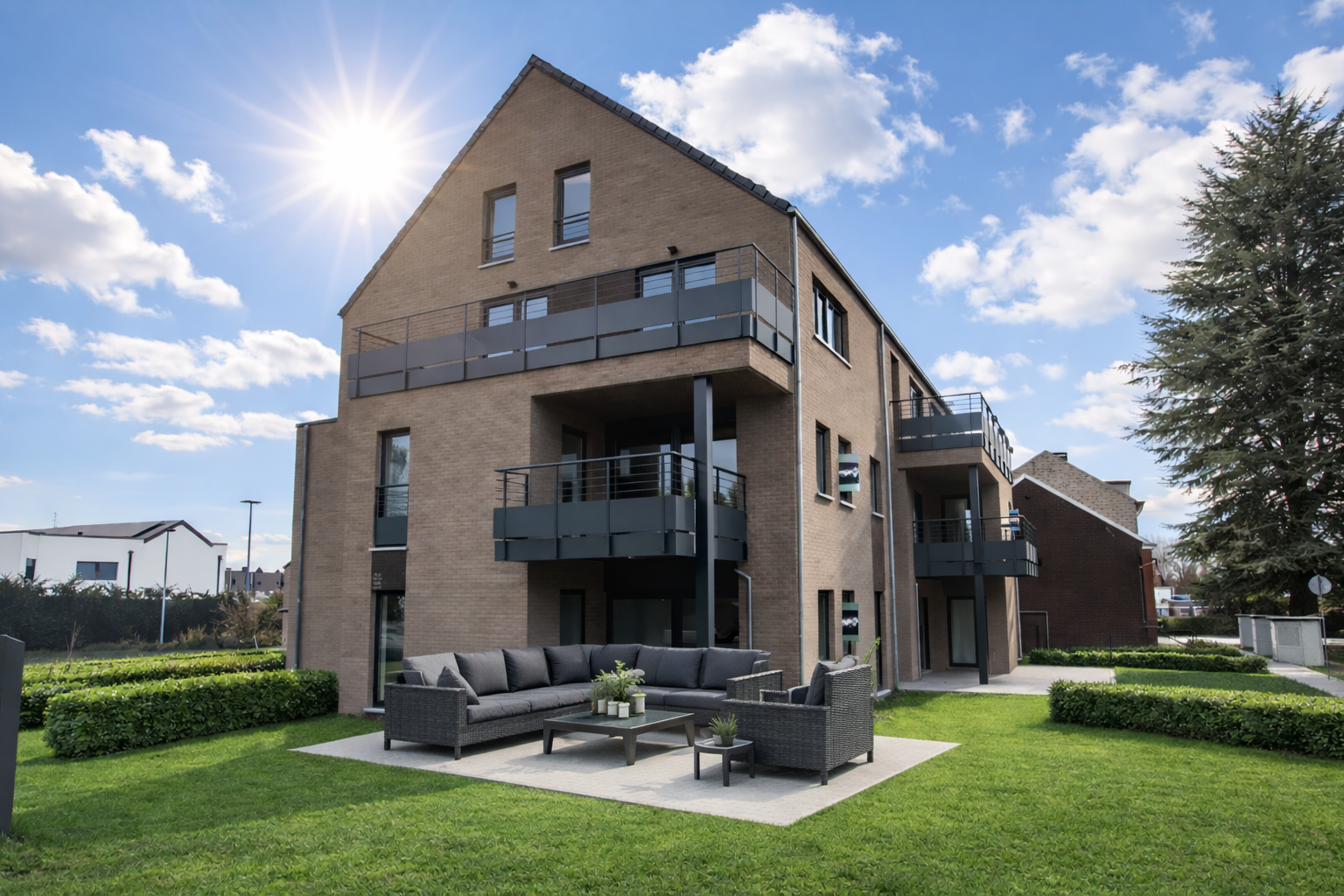 Garde-corps | Horizontaux | Terrasses - Passerelle Terrasse en acier poudré avec poteau de soutien et garde-corps fermés sur le dessous et plus ouverts dessus Terrasse intégrée à la maçonnerie Prev Project Next Project