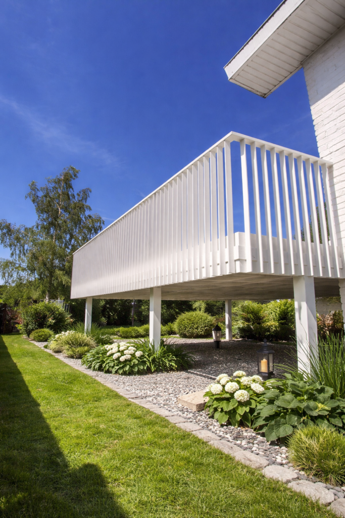 Accessoires | Escalier | Extérieur | Extérieur | Garde-corps | Horizontaux | Pour escalier | Terrasses - Passerelle TERRASSE + GARDE-CORPS + ESCALIER Grande terrasse blanche en acier Garde-corps à montants verticaux Escalier extérieur Prev Project Next Project